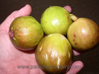 All Gone!!! Everyone came on for this fig - and she's worth it!  Thank you, San Mar supporters!!  Battaglia Green (a deep Strawberry Verte) was introduced by our nursery about 15 years ago.  The tree was saved by our friend, Sandy Battaglia, hence the name.  It turned out to be one of the most beautiful of the verte figs with a rich, dark burgundy-red center.  Stunning in salads and any kind of fruit plate.  Surprises everyone who cuts or bites into it.  Very sweet and delightful.